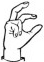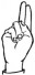 На ћирилици написано ПАУН КОЗНИЧАНИН састоји се из 14 слова [?]. Исписано ћириличном једноручном азбуком за глувонеме: